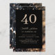 Glamour moderno de oro negro-Purpurina 40. Cumpleaños, invitación plateada. Personalizado en minutos. Añade tus datos, sube tu foto. Puede cambiar la edición del número 40, para que pueda usar la invitación para su 30, 40, 50, 60. Cumpleaños y más.