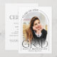 Esta simple tarjeta de graduación minimalista, en blanco y negro, sirve como invitación de graduación y como invitación para una fiesta de graduación, y cuenta con una foto, un armazón y una elegante tipografía moderna.