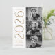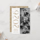 2025 invitaciones a fiestas de graduación con las tres fotos del graduado ubicadas a la derecha del diseño en un diseño vertical. El "2025" se exhibe con letras antiguas de oro/latón y con letras modernas de estilo Art Deco. Personalice la invitación de la moderna fiesta de graduación con fotos agregando el nombre del graduado y el nombre de la escuela. El diseño se invierte para mostrar los detalles de tu fiesta de graduación con un fondo geométrico de bronce y blanco. ¡Perfecto tanto para graduados de secundaria como universitarios!