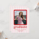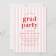 Celebra con estilo con nuestra moda y moderna invitación a la fiesta de graduación! Este diseño, decorado con llamativas rayas rosas y blancas como telón de fondo, está adornado con un atrevido texto rojo para crear un ambiente vibrante y contemporáneo. Perfectamente diseñado para mostrar una preciada foto, es una manera sofisticada de invitar a sus seres queridos a unirse a la celebración.