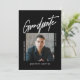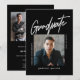 Celebra tu Graduado con esta invitación a la Invitación de invitación a la graduación con guión moderno negro de tres fotos, diseñada en blanco y negro, con una foto central y la palabra "Graduación" en un guión moderno. Esta invitación limpia es perfecta para un graduado masculino como su hijo graduándose de la universidad. Añade dos fotos más en la parte posterior y personaliza esta plantilla con los detalles de la celebración en la parte posterior de la tarjeta. Elija entre impresiones y/o una descarga digital instantánea. Diseño original de Ana Garza/Kardz Studio Designs. Siéntase libre de contactarme a través del Chat Zazzle si tiene alguna pregunta.