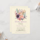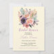 Esta invitación a la ducha de novia es perfecta para una novia a la que le encanta el color amarillo y tiene un ojo puesto en los diseños florales románticos y elegantes. La invitación incluye un bonito ramo de melocotón, rosa, verde y violeta, además de una vegetación multicolor que crea un aspecto impresionante y vibrante. Las palabras "Ducha de novia", el nombre de la futura novia, y la información del registro están todos en un color púrpura bonito que coincide con las flores, y el resto del texto está en gris oscuro. El uso de fuentes y estilos diferentes añade un toque moderno, destacando la invitación. Ya sea que la futura novia esté planeando una ducha de novia con temática bohemia o simplemente buscando un diseño moderno y floral, esta invitación seguramente marcará el tono para un evento memorable. El color amarillo y el diseño floral, suave y vibrante, atraen la atención de los clientes y crean un ambiente cálido y acogedor.