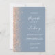 El lado izquierdo de esta elegante y moderna invitación a la boda tiene un diseño de purpurina de melocotón. El texto del personalizable combina la escritura a mano en blanco, el copperplate y las letras cursivas en un fondo azul polvoriento. En el reverso, el purpurina de melocotón y el azul polvoriento combinan a la perfección.