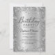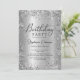 Moderno y elegante Purpurina Plata y Metalizado invitaciones para fiestas de cumpleaños número 30. El diseño de esta tarjeta para adultos girly presenta un guión elegante de caligrafía manuscrita, un marco falso purpurina de cristal plateado alrededor de un fondo de Relieve metalizado metálico color gris plateado. Fácil de personalizar, perfecto para cualquier edad.