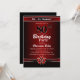 Una vibrante invitación a la fiesta de cumpleaños número 80 de color rojo y negro con texto blanco y una cinta y un arco rojo y blanco. Reemplace los detalles de esta invitación con los suyos propios para crear la invitación perfecta para su fiesta sorpresa.
