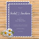 La elegancia y la sencillez hacen que este almuerzo de invitación a la ducha de novia sea único. Un suave fondo de lavanda violeta polvorienta ocupa el centro del escenario de esta invitación, rodeada por un sencillo marco blanco. El guión añade un toque de alegría con su espaciador en forma de corazón. Creado por Simply Farmhouse Press.