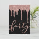 Invitación Moderno Rosa Gold Drips 40 cumpleaños