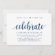 Tarjeta de invitación temática Moderno Rústico, Azul Marino Script (con título de tarjeta: ahora es tiempo de celebrar). Es perfecta para su recepción de boda fugaz / fiesta de celebración post-boda. Agregue sus detalles en fuente / letra negra a juego.