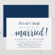 Tarjeta de invitación temática Moderno Rústico, Azul Marino Script (con título de tarjeta: comamos y bebamos, porque estamos casados). Es perfecta para su recepción de boda íntima / fiesta de celebración post-boda. Agregue sus detalles en fuente / letra negra a juego.