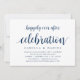 Tarjeta de invitación temática Moderno Rústico, Azul Marino Script (con título de tarjeta: Celebración Felices por Siempre). Es perfecta para su recepción de boda íntima / fiesta de celebración post boda. Agregue sus detalles en fuente / letra negra a juego.
