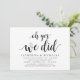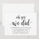 Tarjeta de invitación temática Moderno Rústico con letra negra (con título de tarjeta: oh sí, lo hicimos). Es perfecta para su recepción de boda secreta / fiesta de celebración post boda. Agregue sus detalles en fuente / letra negra coincidente.