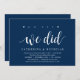 Tarjeta de invitación temática Moderno Rústico, Escritura Azul Marino (con título de tarjeta: oh sí, lo hicimos). Es perfecta para su recepción de boda fugada / fiesta de celebración post-boda. Agregue sus detalles en fuente / letra negra coincidente.