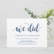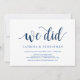Esta tarjeta de invitación de tema Rústico (Nosotros lo hicimos), en color de fuente personalizada Azul Marino, es perfecta para la celebración de su boda / anuncio de fiesta. Agregue sus detalles en fuente / letra negra coincidente. (puede cambiar el color de la fuente a otros colores personalizados)