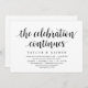Tarjeta de invitación temática Moderno Rústico con Letra Negra (con título de tarjeta: la celebración continúa). Es perfecta para su recepción de huida de boda / fiesta de celebración posterior a la boda. Agregue sus detalles en fuente / letra negra coincidente.