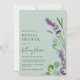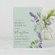 Este es un elegante eucalipto de color verde salado y una ducha de novia lavanda invitación a celebrar a la futura novia. Utilizando un diseño de hermosa y clásica vegetación eucaliptus y lavanda femenina sobre un suave fondo verde sabio, edite fácilmente el texto según sea necesario usando la plantilla proporcionada y celebre los próximos nupciales de la novia en un elegante estilo moderno. Póngase en contacto con el diseñador para cualquier consulta sobre este diseño o para cualquier producto no disponible que coincida.