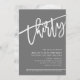 Invitación MODERNO SCRIPT 30 cumpleaños fiesta gris gris blan