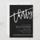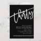 Invitación MODERNO SCRIPT fiesta de 30 años blanco negro