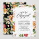 Celebra tu día especial con esta elegante invitación de fiesta moderna. Este diseño presenta una tipografía chic con un fondo de patrón floral tropical. Diseños coincidentes disponibles en mi tienda BaraBomWedding.