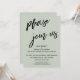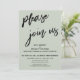 La distinción de este conjunto se debe a la fuente de escritura moderna y manuscrita utilizada para las frases de acento. En esta pieza, se utilizó la fuente de escritura a mano para crear un gráfico que representa las palabras "por favor únase a nosotros". Utilice los campos de la plantilla para agregar sus datos personales y hacer que este diseño moderno y único sea suyo. El fondo se puede cambiar a cualquier color que prefiera. Por favor, comuníquese con nosotros para cualquier solicitud especial o para obtener ayuda para personalizar. // 100 //