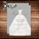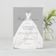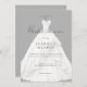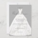 Suave y romántica, esta invitación a la ducha de novia luce un vestido boda blanco centrado en un fondo gris plateado pálido bajo una capa transparente blanca y nebulosa. Elegante, sencillo y romántico. Creado por Simply Farmhouse Press.