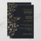 Esta elegante invitación a bodas botánicas florales en negro y oro se puede personalizar con tus detalles en la moderna tipografía de oro. Diseñado por Thisisnotme©