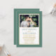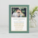 Moderno y elegante foto Minimalista Eucalyptus Invitación a la Boda Verde y Blanca. Marco dorado. Guión dorado.