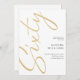 Crea tus propias invitaciones personalizadas de cumpleaños número 60 con tipografía de escritura minimalista en color oro.