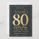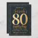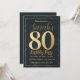 Esta elegante tarjeta de invitación tiene un gran 80 dorado sobre un fondo oscuro, lo que lo hace perfecto para celebrar un hito. El diseño clásico se acentúa con sutiles motivos geométricos, añadiendo un toque de sofisticación. Personalice con los detalles del fiesta para completar esta elegante invitación.