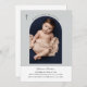 Celebre el bautismo de su hijo especial o hija con este diseño moderno, minimalista y sencillo, con diseño de fotos en arco de boho diseñado con fondo negro de dos tonos y cruz negra. Para cambiar la foto y las fuentes, elija editar este diseño más adelante para abrir opciones adicionales de personalización.