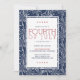 Nuestra invitación patriótica al partido del 4 de julio es perfecta para su barbacoa, fiesta de piscina o vestuario de playa. El diseño presenta un fondo de patrón de fuegos artificiales en azul marino y blanco, con texto rojo oscuro y marino y acentos estrella.