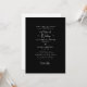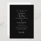 Elegante invitación de boda blanca y negra. Ambos grupos de padres enumerados. Momentos benéficos.