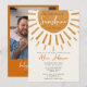 Esta linda invitación de baby shower boho 'pequeño sol' se puede personalizar con su información en tipografía elegante y su foto especial en el reverso. Diseñado por Thisisnotme©