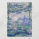 This elegant invitation has as a background a water lilies painting by Claude Monet (now in the public domain). The text is in a transparent white arch. The occasion "Wedding" and the names are written in a green elegant calligraphic script, the rest in small black caps. The water lilies are pink.