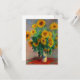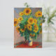 Tarjeta con la pintura al óleo de Claude Monet Bouquet of Sunflowers (1881). Hermosos girasoles en un jarrón azul sobre una mesa roja. Un gran regalo para los aficionados al impresionismo y al arte francés.