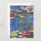 Tarjeta con la pintura al óleo de Claude Monet Water Lilies (1916). Hermosas nenúfares rosas, violetas y rojas flotando en un estanque sereno. Un gran regalo para los aficionados al impresionismo y al arte francés.