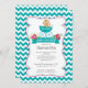 Pequeño mono dulce, dulce y moderno, invitación a la ducha de bebé. Nuestra invitación a la moda incluye un mono lindo sentado en una carroza con una moderna pancarta con flores de bonito sobre un fondo azul turquesa de zag chevron zig. Si lo desea, podrá volver a visitar nuestro popular y elegante restaurante para encontrar un chevron a juego. Perfecto para una ducha de bebé de safari, una ducha de bebé en la jungla o una fiesta temática de la ducha de bebé de mono. Disponible en nuestra tienda en una variedad de populares opciones de color.
