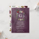 A floral frame in red, blush and purple with greenery surrounds your monogram over a dark purple watercolor background. You can add the letter of your last name and all of your wedding details. The back of the card has colorful flowers and hand drawn gold flowers in a seamless pattern. Click the Customize link/button to open the design editor where you have the ability to change fonts, images, and more. This invitation is a part of a collection in my store. Please send me an email if you have any questions. Thank you! Lizzy