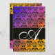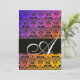 Invitación MONOGRAMA AZUL AMARILLO PURPLE NEGRO DAMASK , blan