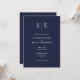 Esta invitación a la boda de moda, minimalista, azul marino y oro puede ser personalizada con sus iniciales de monograma e información sobre el día de la boda. Con toda la información especial sobre el día de la boda, incluyendo su RSVP, alojamiento y detalles adicionales. Diseñado por Thisisnotme©