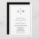 Invitación Monograma blanco negro Boda de borde simple mínimo