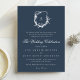 Invitación monograma boda de escudo azul marino de araña clás