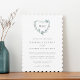 Nuestra hermosa invitación a una boda con una acuarela en color Mountain Meadow incluye tus iniciales, monograma o duograma en la parte superior, enclavado en un delicado corazón en forma de follaje acuático de primavera y hojas en tonos pálidos de verde salvia y violeta púrpura. Una visión romántica y elegante de la tendencia botánica para bodas de primavera o verano.