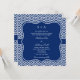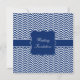 Monogramado azul real con invitaciones de boda con patrón de chevron.