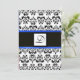 Invitación MONOGRAMA DAMASCO,negro y blanco,azul