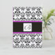 Invitación MONOGRAMA DAMASCO, negro y blanco, oro rosa violet