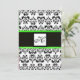 Invitación MONOGRAMA DAMASCO, negro y blanco, verde esmeralda