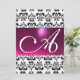 Invitación MONOGRAMA DAMASK GEM púrpura rosa negro blanco pla