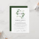 Invitación a una boda monocálmica muy elegante con un diseño de temática floral orgánica en follaje acuarela y fuente gris clásica con acento caligráfico de moda. Su monograma o su inital aparecen en un cuadrado blanco, enmarcado por hojas de hiedra exuberantes, y hojas de nieve y eucalipto sobre un fondo blanco y crujiente. Tarjeta invertida en un rico color verde del bosque. Elija este diseño para bodas de invierno elegantes, nupcias de otoño o otoño, o incluso bodas en verano. Artículos coincidentes disponibles en nuestra colección Hedera. Para obtener ayuda o solicitar personalizado, póngase en contacto con nosotros a través de la tienda o escriba en citronelladesign@gmail.com