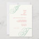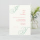 Diseño minimalista simple basado en el monograma inicial suave del novio y la novia. Colores de Pera Inglesa y Amapola de Primavera, un verde marino claro y rosa cálido, sobre un fondo marfil. Los colores son completamente personalizables en la herramienta de diseño. Se revierte a un suave ramo floral de acuarela en los colores de un jardín inglés en primavera.