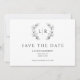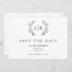 Este clásico y sencillo salven la fecha es el toque perfecto para su elegante boda! Una corona de laurel de tipo pluma y tinta rodea su monograma personalizado. La vegetación en blanco y negro es refinada y está limpia. ¡Es un diseño atemporal!